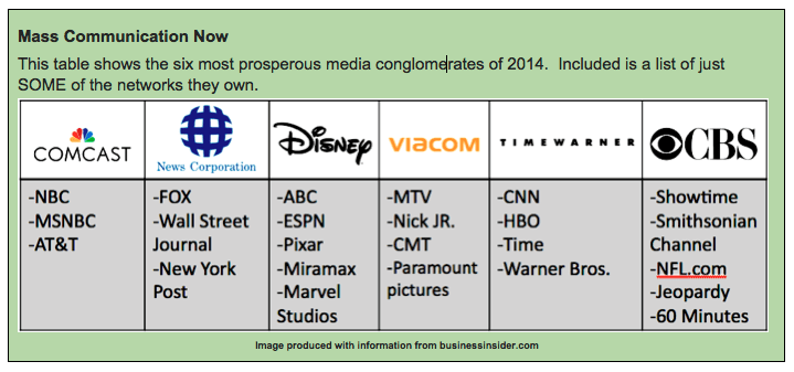 How about “Although nothing bad has happened yet, why couldn’t it?” Getting down to only six or so major conglomerates running everything isn’t that likely to happen, but I like the take on it that I read in this article from the Entertainment Strategy Guy.